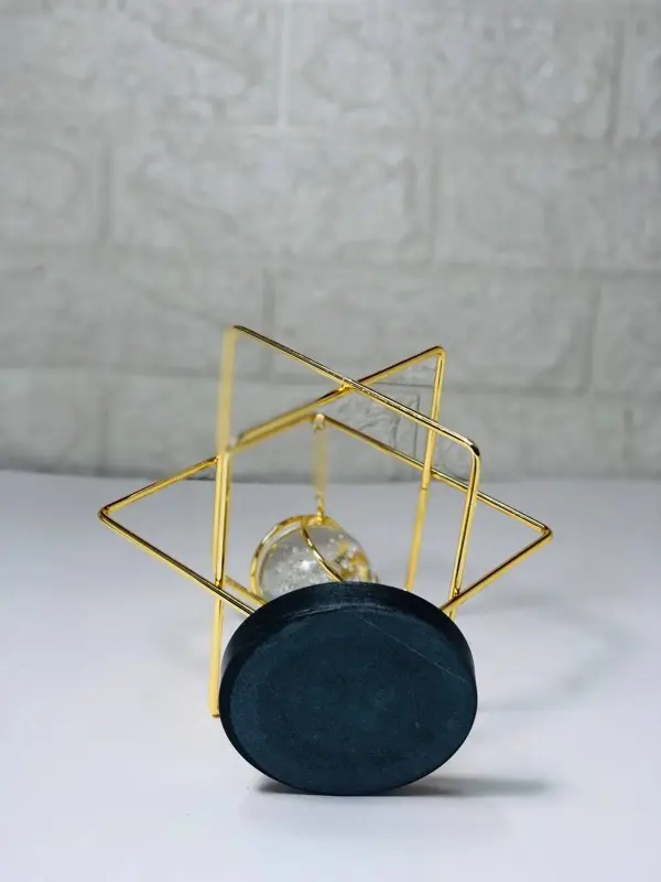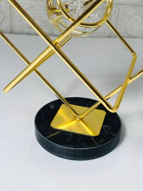 اكتشف قطعة فنية فريدة تأخذك في رحلة إلى عالم الأناقة الكلاسيكية مع قطعة الديكور الذهبية بكرة زجاجية وقاعدة رخامية. صُممت هذه القطعة لتكون أكثر من مجرد إكسسوار، فهي لمسة ديكور راقية تروي قصة فخامة الماضي وتألق الحاضر. تتميز هذه القطعة بكونها مصنوعة من المعدن المتين بلمسة نهائية ذهبية عتيقة، وتزينها كرة زجاجية شفافة داخل إطارها، مما يضيف لها بريقًا خاصًا وجاذبية لا تُقاوم. ترتكز هذه التحفة على قاعدة رخامية متينة، تمنحها ثباتًا وأناقة إضافية على أي سطح. بفضل جودتها العالية وتصميمها المتقن، تعد هذه القطعة مثالية لإثراء أي مساحة، سواء كانت مكتبًا أو منزلًا، كما أنها خيار ممتاز كهدية قيمة ومختلفة. يبلغ مقاسها ١٩ سم، مما يجعلها مناسبة للتزيين على المكاتب، الأرفف، الطاولات الجانبية، أو أي ركن ترغب في إبرازه.