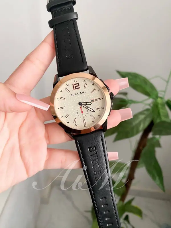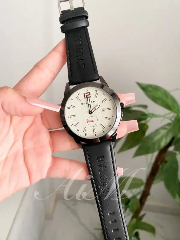 امنح إطلالتك لمسة من الأناقة والتميز مع ساعة بلغاري كلاسيك جلد رجالي. تتميز هذه الساعة بتصميمها الأيقوني الأنيق، المصنوع من خامة عالية الجودة، مع حزام جلد أسود يضفي عليها طابعاً كلاسيكياً.