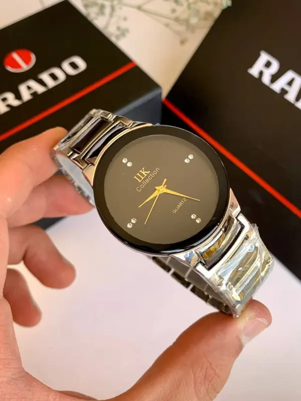 تتميز هذه الساعة بتصميمها العصري الذي يشبه الرادو الشهيرة، مع أوستيك معدني متين يمنحها إحساسًا بالقوة. تم تصميمها بشكل وتصميم مميز لتناسب جميع الأذواق والمناسبات.