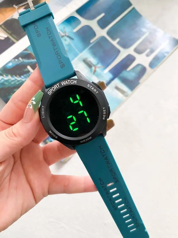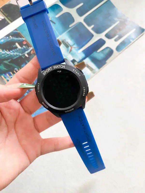 الساعة مزودة بشاشة رقمية تعرض الوقت والتاريخ بوضوح. كما أنها تحتوي على إضاءة لسهولة الرؤية في الظلام. الساعة مصممة بحزام من الرابر المتين، وهي مقاومة للماء وضد الصدأ لتناسب مختلف الأنشطة.