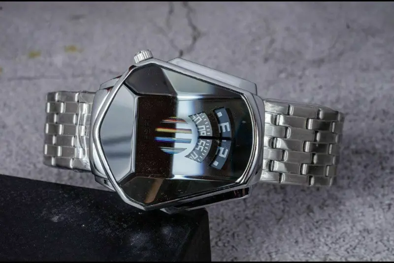 تتميز هذه الساعة بتصميم معدني ثقيل يمنحها إحساسًا بالفخامة والمتانة. يأتي السوار بألوان IPG ثابتة ومقاومة للصدأ، مما يضمن بقاء مظهرها اللامع والجذاب لفترة طويلة. جميع الأختام محفورة عليها بدقة، مما يضفي عليها طابعًا أصيلًا ويزيد من جودتها.