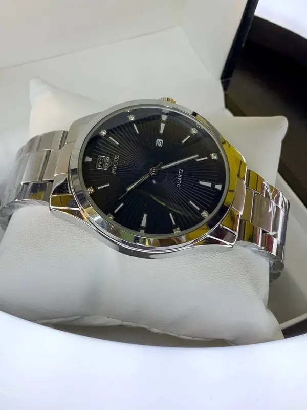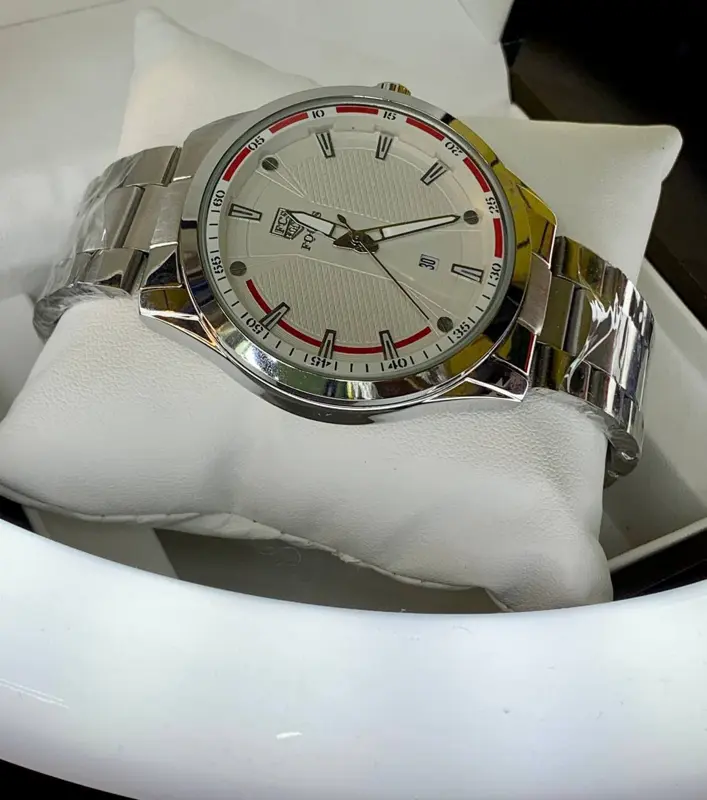 تتميز هذه الساعة بتصميم فريد ومميز جدا، مع إطار من الستانليس ستيل وسوار صلب يمنحها إحساسًا بالقوة والمتانة. تم تصميمها بدقة لضمان أفضل أداء مع مظهر فاخر، مع قفل معدني مختوم لضمان الأمان والراحة.