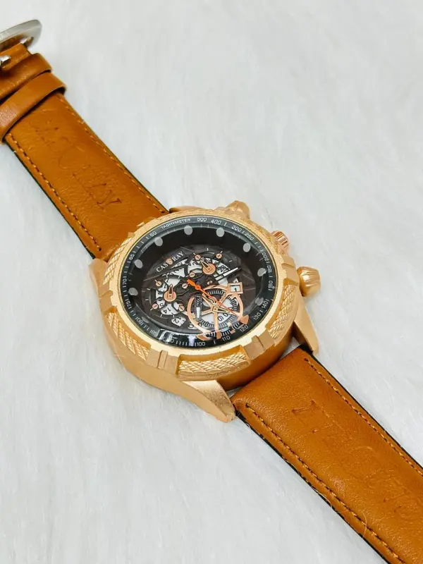 تتميز هذه الساعة بتصميم كلاسيكي خالد مع سوار من الجلد عالي الجودة، مما يضمن الراحة والمتانة. يبرز مينا الساعة الأنيق بوجود نتيجة (عرض التاريخ)، وهي مصممة بدقة لضمان أفضل أداء.