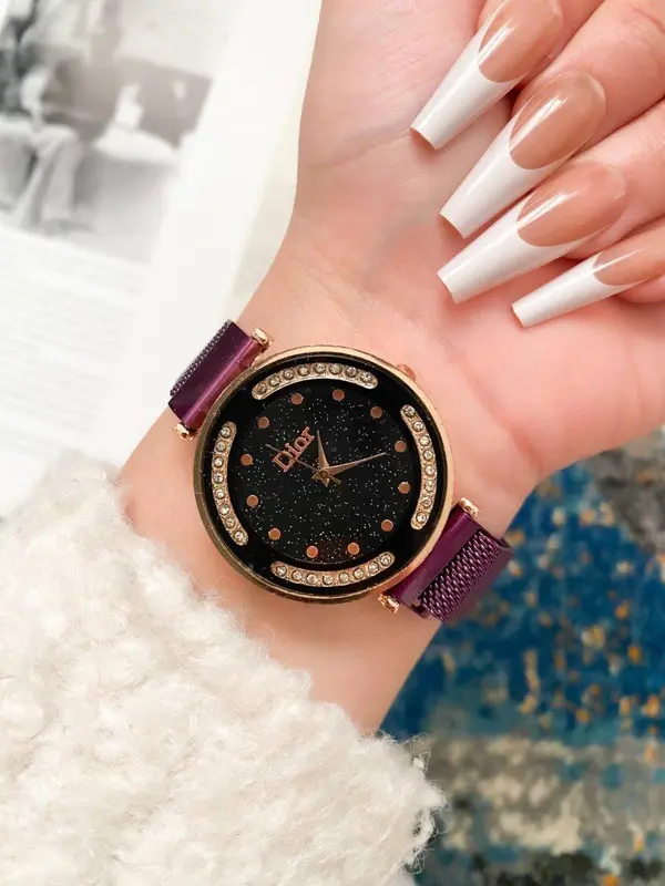 أضيفي لمسة من الأناقة الفرنسية إلى إطلالتكِ مع هذه الساعة النسائية الرائعة! بفضل تصميمها الأنيق المستوحى من ماركة ديور وحزامها المغناطيسي المريح، تُعد هذه القطعة إكسسواراً مثالياً يجمع بين الجمال والعملية.