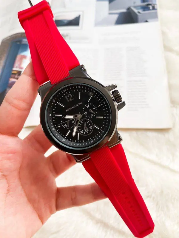 اكتشف الأناقة العصرية مع ساعة مايكل كورس رابر رجالي، قطعة مثالية لإطلالة شيك وعملية. تتميز هذه الساعة بتصميمها المميز المصنوع من خامة عالية الجودة، مع حزام رابر مريح باللون الأسود.