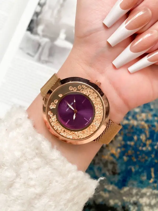 استكملي إطلالتكِ بلمسة من السحر مع هذه الساعة النسائية الفريدة! بفضل مينائها اللامع الذي يشبه سماء الليل المرصعة بالنجوم، تُعد هذه القطعة إكسسواراً مميزاً يضيف لمسة من الجاذبية إلى مظهركِ، وتناسب جميع الإطلالات.