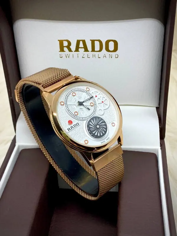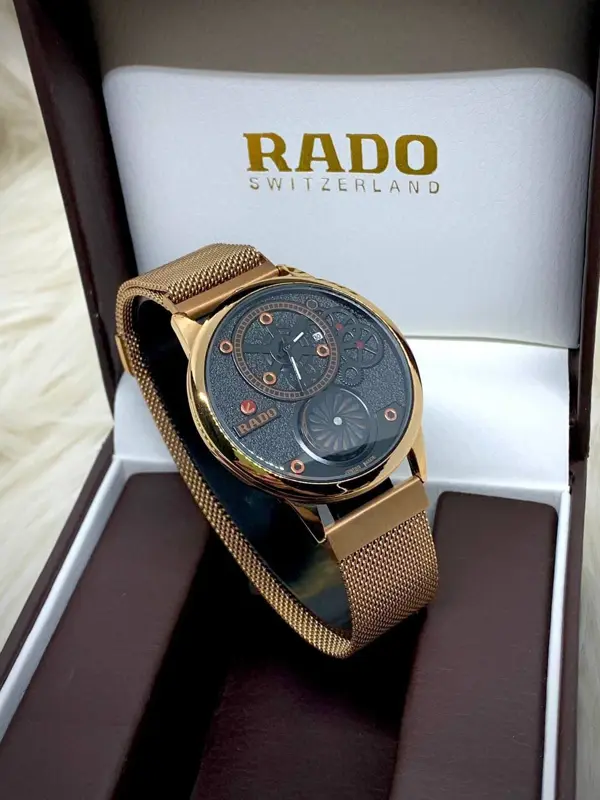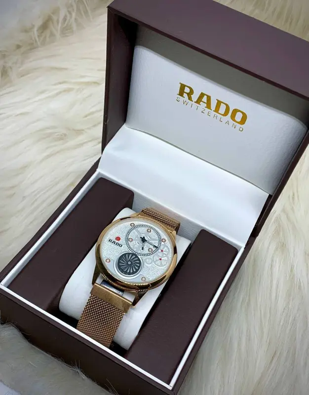 لجميع عشاق التميز، نقدم لكم ساعة "RADO" التي تجمع بين الأناقة العصرية والابتكار. هذه الساعة ليست مجرد أداة لمعرفة الوقت، بل هي قطعة فنية على معصمك، متوفرة بألوان وأشكال فريدة تليق بجميع الأذواق.