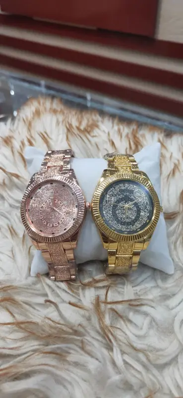 تتميز هذه الساعة بتصميم معدني أنيق ومتين باللون الذهبي الجذاب، مما يمنحها إحساسًا بالفخامة. يبرز مينا الساعة الأنيق بوجود عرض للتاريخ، بينما يضيف التصميم المزخرف على السوار لمسة فنية فريدة، مما يجعلها قطعة استثنائية.