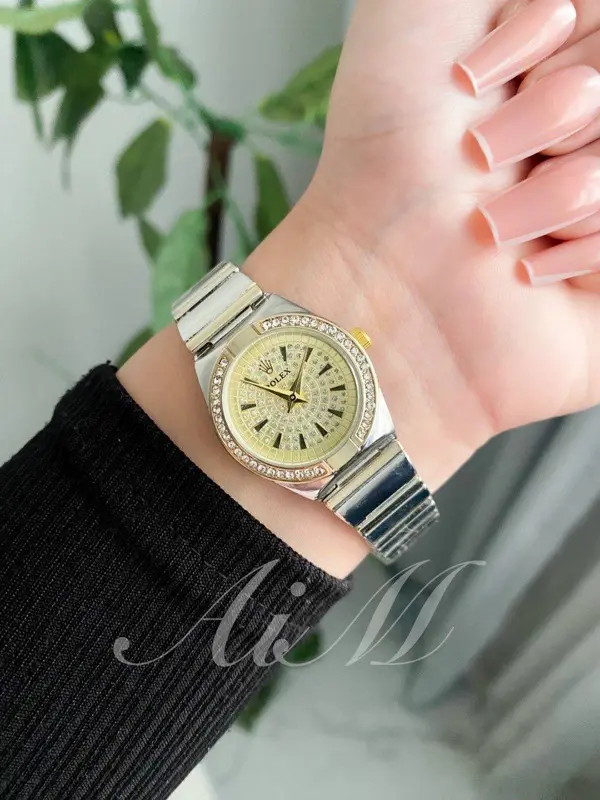 أضيفي لمسة من الأناقة العصرية إلى إطلالتكِ مع ساعة رولكس لوريال الفريدة! بفضل تصميمها الأنيق الذي يشبه الأنسيال، ولونها الجذاب الذي يجمع بين الفضي والذهبي، تُعد هذه القطعة إكسسواراً فاخراً يمنحكِ مظهراً جذاباً يليق بجميع المناسبات.