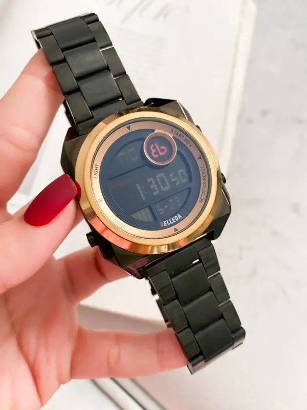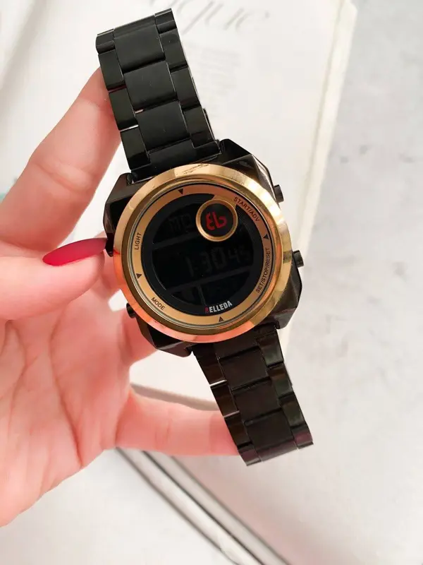 تتميز الساعة بكونها ضد الصدأ ومقاومة للماء، وتضم العديد من الوظائف الأساسية مثل المنبه، الستوب ووتش، والإضاءة، مما يجعلها عملية للغاية ومثالية للاستخدام اليومي.