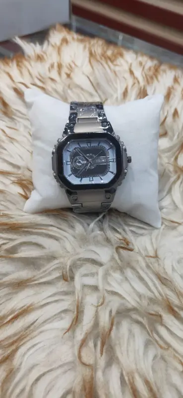 تتميز هذه الساعة بتصميم معدني أنيق ومتين باللون الفضي الجذاب، مما يمنحها إحساسًا بالفخامة. يبرز مينا الساعة الأنيق بوجود عرض للتاريخ، وهي مصممة بدقة لضمان أفضل أداء مع مظهر جذاب.