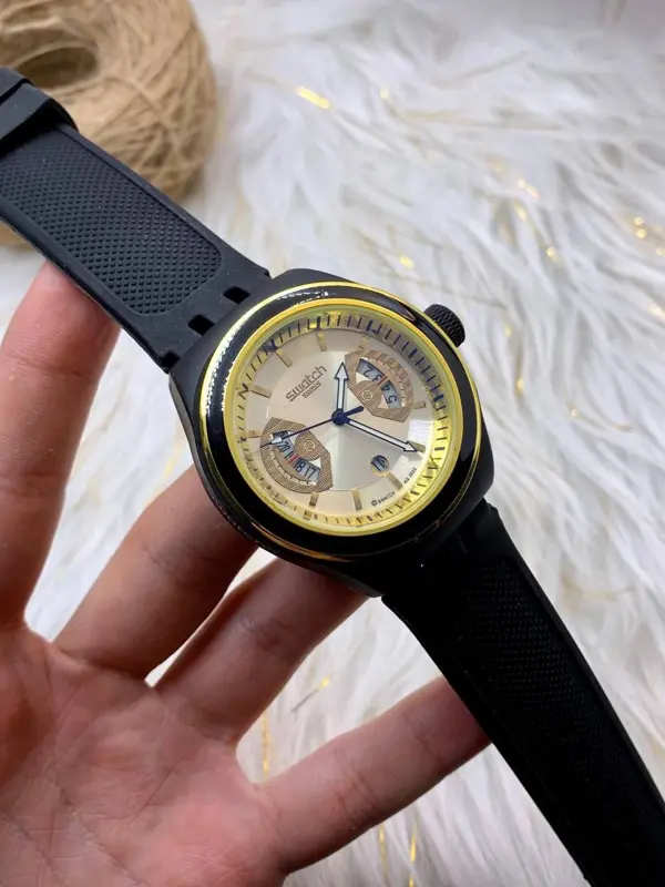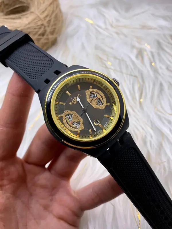 تتميز هذه الساعة باستيك من الرابر عالي الجودة الذي يمنحك راحة فائقة على المعصم. تحتوي على عداد نتيجة لضبط التاريخ، كما أن القفل مختوم لإضفاء لمسة من الجودة. يظهر المينا بتصميم متعدد يجمع بين الأناقة والوظائف المتعددة.