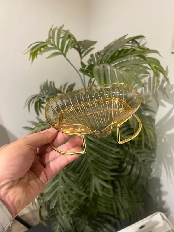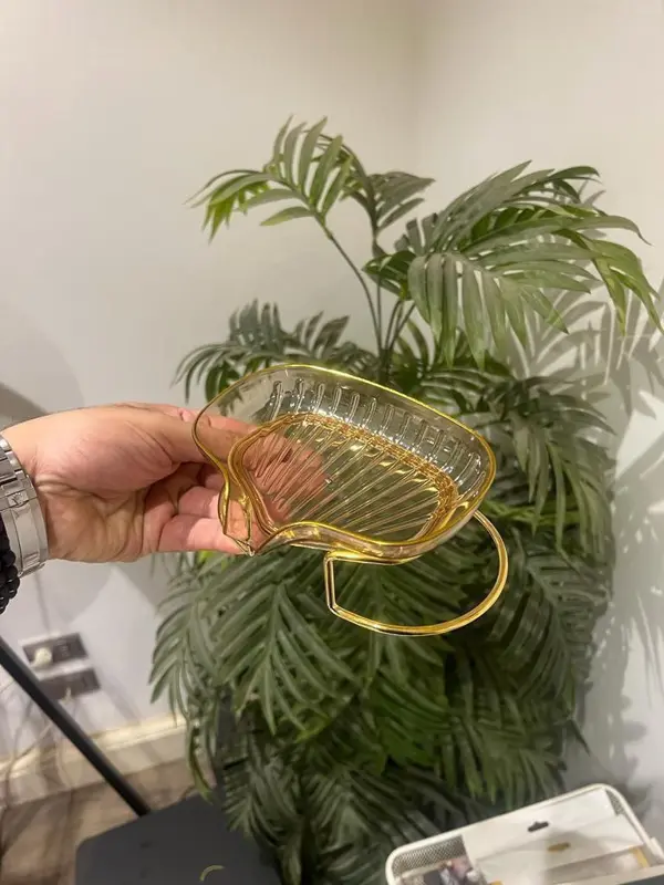 • تصميم شيك وعصري: تتميز بتصميم أنيق يجمع بين الأكريليك الشفاف واستاند معدني باللون الذهبي الفاخر، لتضفي لمسة ديكور راقية على الحمام أو المطبخ.