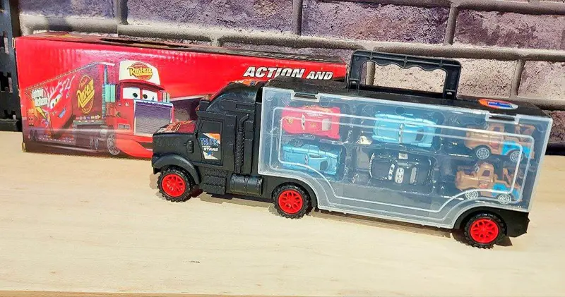 تتميز الشاحنة بتصميم متين وحجم كبير، وهي مصنوعة من بلاستيك آمن وعالي الجودة. يمكن فتح الجزء الخلفي من المقطورة لوضع السيارات الصغيرة بالداخل، مما يضيف واقعية ومتعة للعبة. تصميمها مستوحى من شخصيات الفيلم، مما يجعلها جذابة جداً لمحبي "كارز".