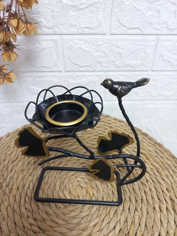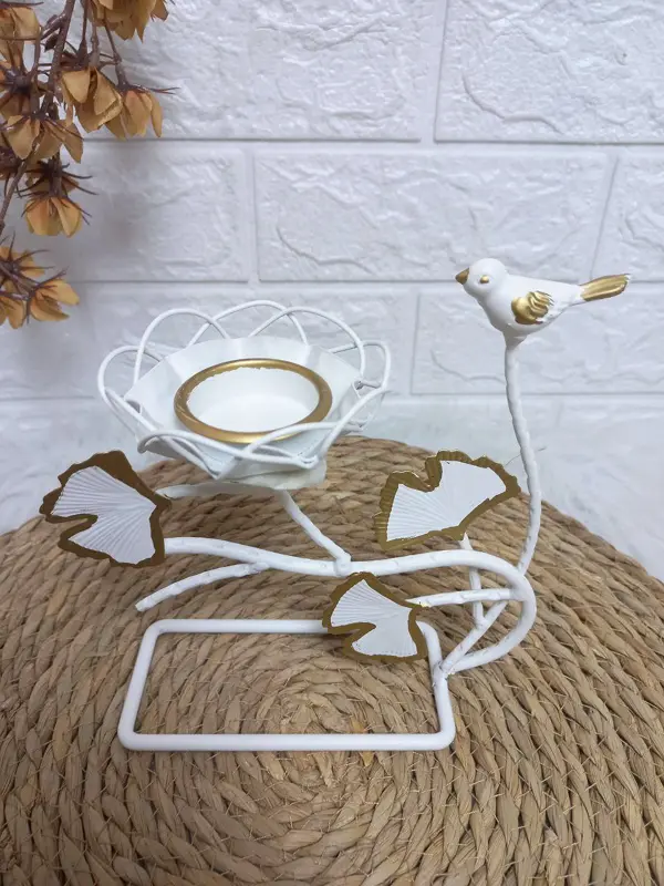 رائج شمعدان "غصن الشتاء" المعدني المزدوج للديكور الفاخر العصفور الهاديء