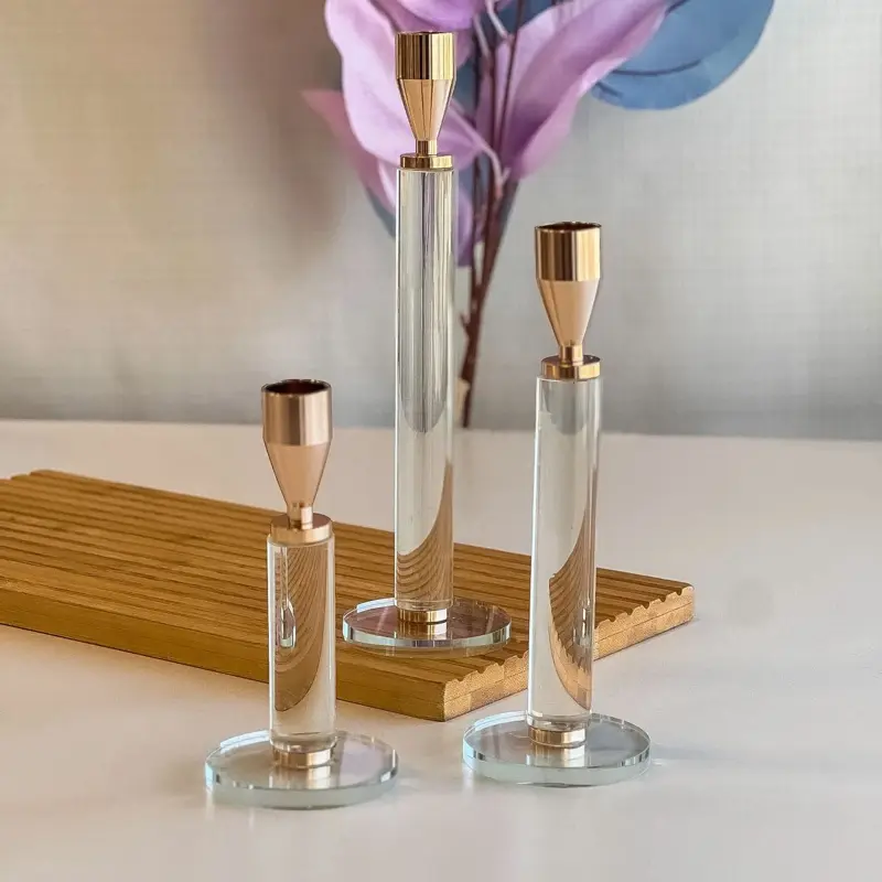رائج شمعدان كريستال فاخر 3 قطع (باللون الذهبي) لتزيين منزلك