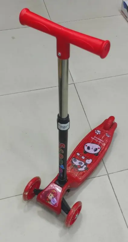 يتميز السكوتر بتصميم يشبه الدبابة بقاعدة عريضة ومستقرة، مما يوفر أماناً عالياً للأطفال الصغار. يأتي بـ عجلة أمامية عريضة وعجلتين خلفيتين لزيادة الثبات. كما يضم سلة أمامية لوضع الألعاب و إضاءات جذابة وأصوات موسيقية تزيد من متعة اللعب.