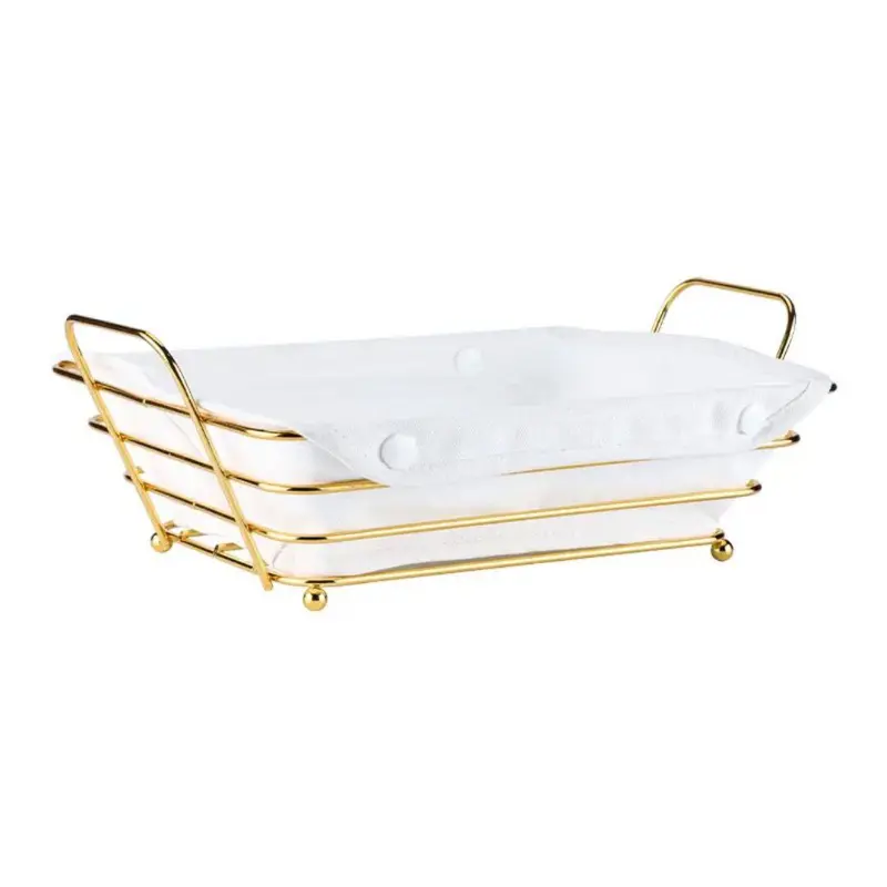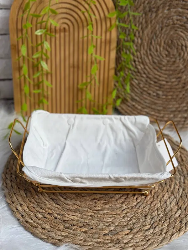 نقدم لكِ سلة الخبز المعدنية، وهي قطعة أنيقة ومتعددة الاستخدامات، تم تصميمها بعناية لتكون إضافة فاخرة لمطبخك أو مائدة الطعام. تتميز السلة بتصميمها الذهبي اللامع الذي يضفي لمسة من الفخامة والرقي، كما أنها مصنوعة من المعدن عالي الجودة، مما يضمن متانتها وقدرتها على تحمل الاستخدام اليومي.