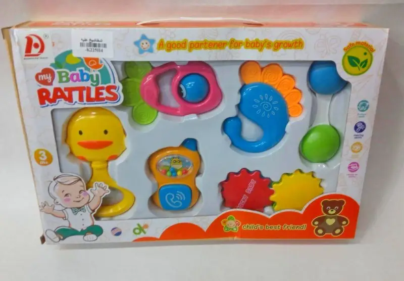 تتميز الألعاب بكونها مصنوعة من مواد بلاستيكية آمنة تماماً على الأطفال، وخالية من أي مواد ضارة. يحتوي الصندوق على تشكيلة متنوعة من الشخاشيخ بأشكال وألوان جذابة، بالإضافة إلى عضاضات بأسطح مختلفة مصممة لتخفيف آلام التسنين. كل قطعة مصقولة بعناية لضمان سلامة طفلكم.