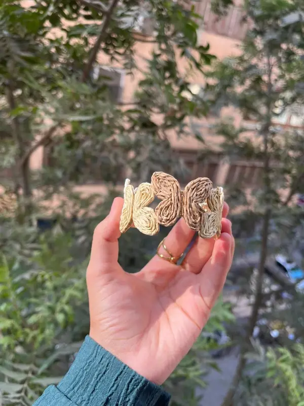 أضيئي معصمك بلمسة من الحيوية والجمال المستوحى من الشاطئ مع هذه الإسورة الجذابة. تتميز بتصميم فريد يجمع بين الخيوط المنس…