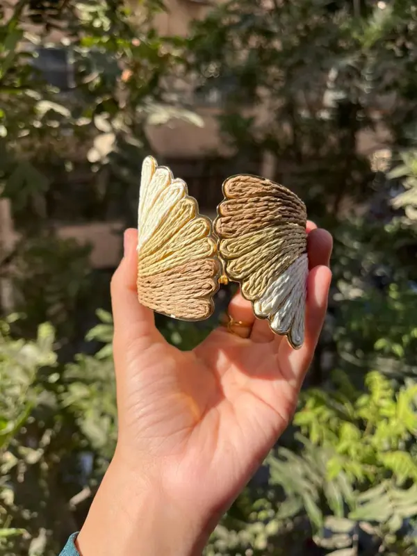 امنحي معصمك لمسة من الطبيعة الساحرة مع هذه الإسورة المبتكرة، التي تتميز بتصميمها الملتف والمصنوع يدويًا. تجمع هذه القطعة بين المعدن الذهبي اللامع والخيوط المنسوجة بعناية، مما يضفي عليها مظهرًا فريدًا يجمع بين البساطة والفخامة.