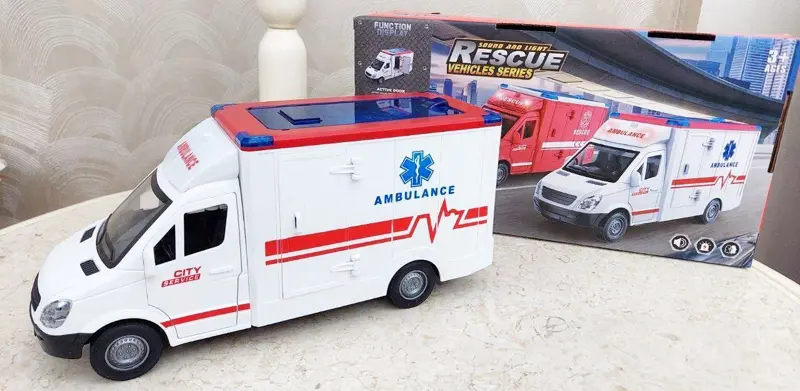 تتميز السيارة بتصميمها الذي يُحاكي سيارات الإسعاف الحقيقية، مع تفاصيل دقيقة وأضواء لامعة وصافرات تنبيه واقعية. تحتوي على عجلات كبيرة لتسهيل حركتها، ومصنوعة من مواد بلاستيكية متينة وآمنة على الأطفال. تُعتبر مثالية لتشجيع اللعب الإبداعي والقصص الخيالية.
