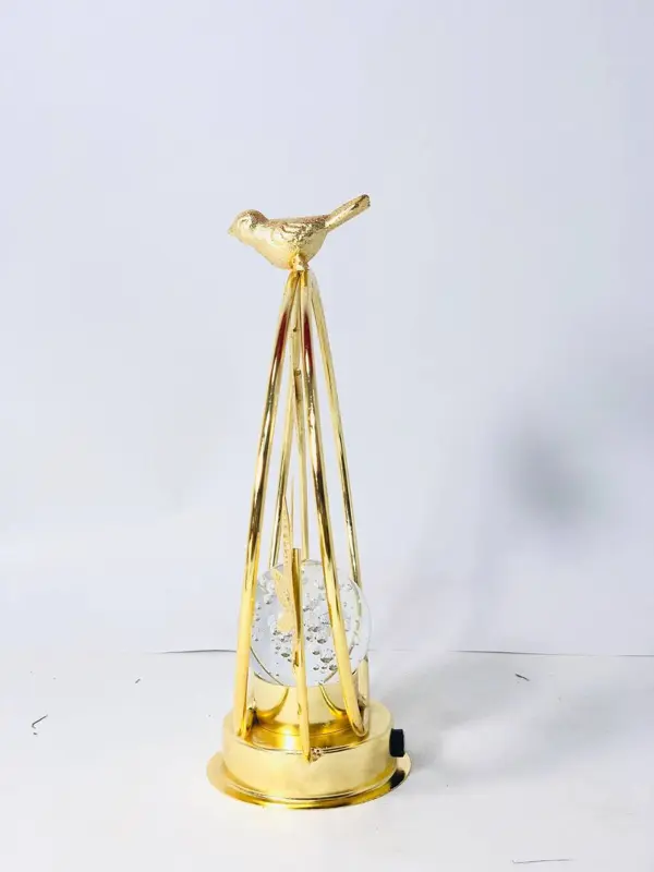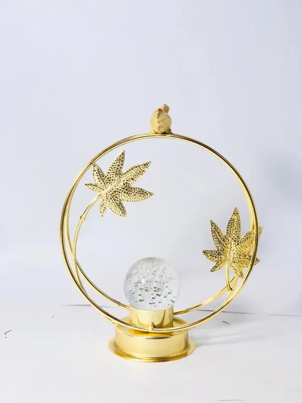 تتكون من هيكل معدني دائري ذهبي بتصميم أنيق وعصري، يحمل في منتصفه كرة زجاجية كريستالية تحتوي بداخلها على مجسم ثلاثي الأبعاد دقيق الملامح. بمجرد توصيلها بكيبل USB، تضيء الكرة بألوان ساحرة، لتحول أي ركن إلى لوحة فنية مضيئة.