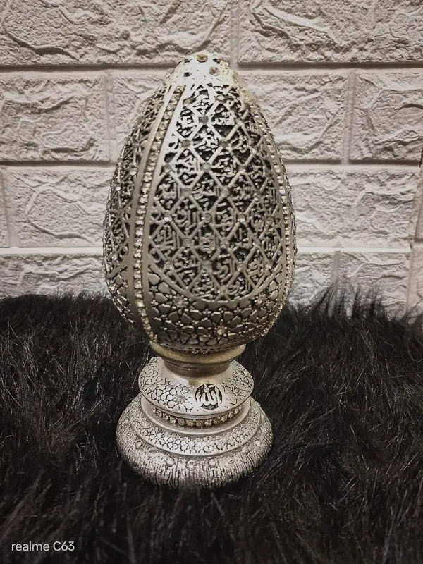 صُنع هذا المجسم من خامة صلبة ومتينة، وتم تزيينه بدقة متناهية بأجمل النقوش العربية واللمسات الذهبية والفضيّة. يعكس تصميمه الأنيق جمال العمارة الإسلامية، ويجعله قطعة ثابتة وآمنة للاستخدام كديكور.