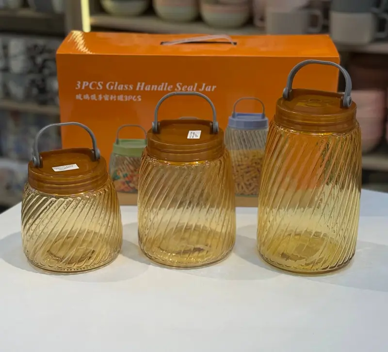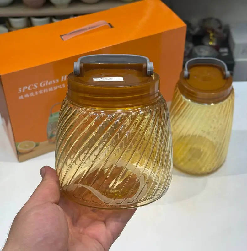 نظمي مطبخك بلمسة عصرية ودافئة مع طقم برطمانات التخزين الزجاجي المستورد! يتميز هذا الطقم بلونه العسلي (Amber) الجذاب الذي يضيف شياكة لرفوف التخزين، والأهم أنه مصمم بغطاء محكم الغلق لضمان أعلى مستوى من الحفاظ على نضارة وجودة مكوناتك الجافة.