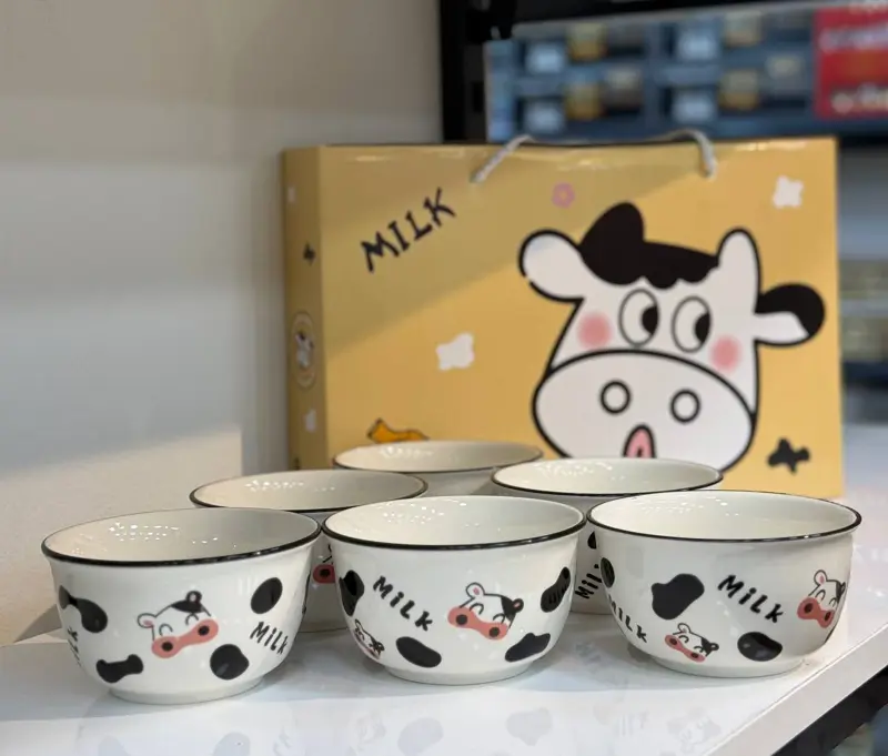 لمسة من المرح والدفء على مائدة إفطارك. هذا الطقم المستورد المكون من 6 قطع هو إضافة ساحرة لمجموعة أواني الطعام الخاصة بكِ، فهو يتميز بتصميمه اللطيف والمميز برسومات مستوحاة من الأبقار. كل بولة مصنوعة من البورسلين عالي الجودة وهي آمنة للاستخدام في الميكروويف وغسالة الأطباق. يأتي الطقم في علبة أنيقة، مما يجعله خياراً مثالياً لتقديمه كهدية مميزة. يبلغ مقاس البولة حوالي 10 سم.