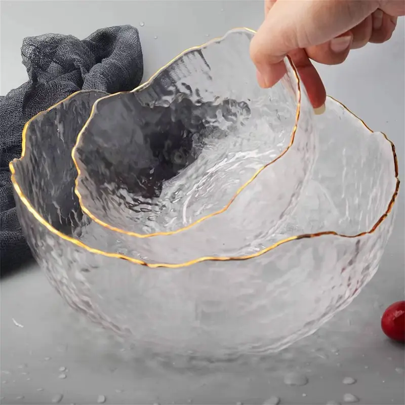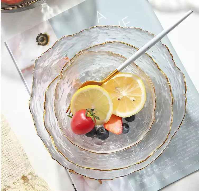 نقدم لكِ طقم البولات الزجاجي الشفاف، الذي يضفي لمسة من الفخامة والأناقة على مائدتك. يتميز الطقم بتصميمه الدائري وإطاره الذهبي، مما يجعله قطعة فريدة ومميزة. يتكون الطقم من 3 قطع بمقاسات مختلفة، مما يجعله مثاليًا لتقديم الأطعمة المتنوعة.