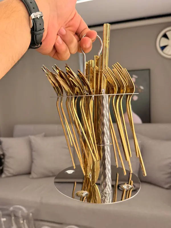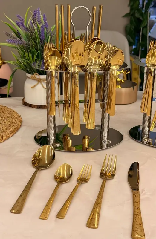 الأناقة والجودة تلتقيان في طقم واحد! طقم أدوات المائدة المستورد هذا يوفر لكِ مجموعة متكاملة بلمسة عصرية، ومثالي للاستخدام اليومي والضيافة الراقية.