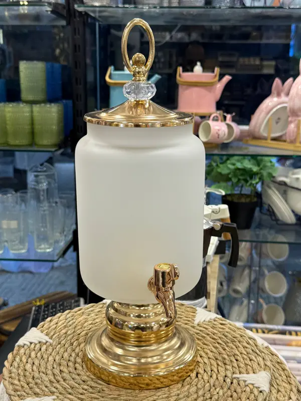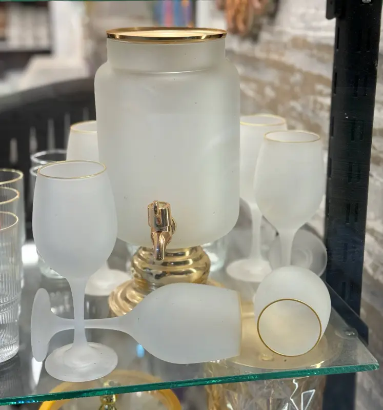 ارتقي بمستوى ضيافتكِ مع هذا الطقم الأنيق! طقم الديسبنسر والكاسات المستورد يضمن لكِ تقديم المشروبات الباردة بلمسة من الفخامة العصرية.