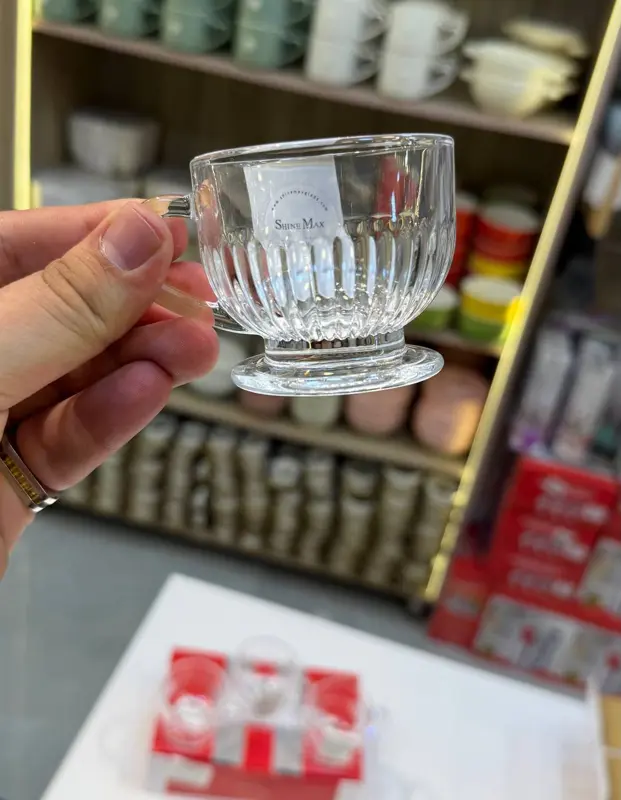 ☕✨ طقم فنجان قهوة مضلع باليد – ستايل فخم يليق بذوقك 👌 الطقم مكون من 6 قطع زجاج كريستال شفاف ولمعة تخطف العين 💎 تصميم…