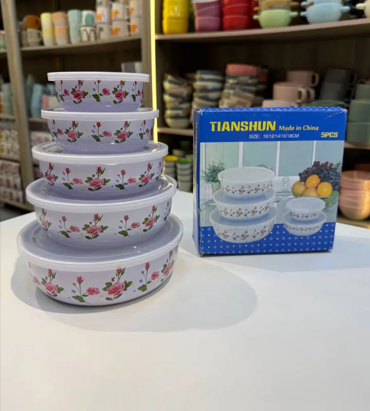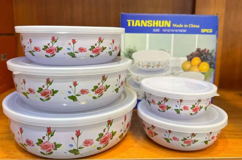 تتميز الحلل بتصميمها الملون والجميل مع نقوش الورود، مما يجعلها ليست مجرد أواني طهي، بل قطع ديكور مميزة. يمكن استخدامها للطهي أو للتخزين في الثلاجة، وتأتي بأغطية محكمة الغلق للحفاظ على الطعام طازجًا.