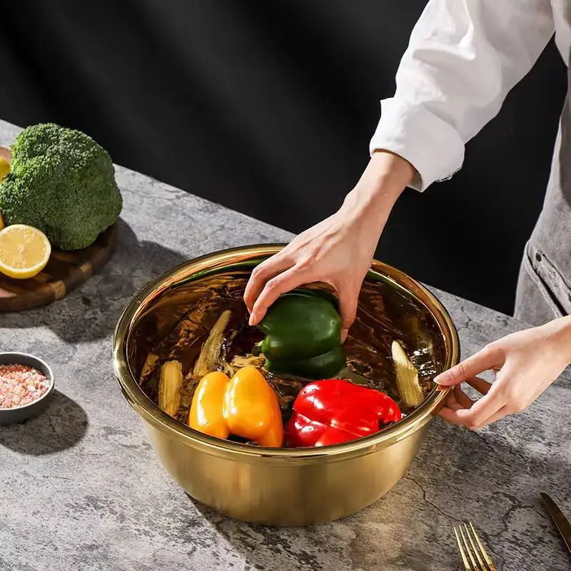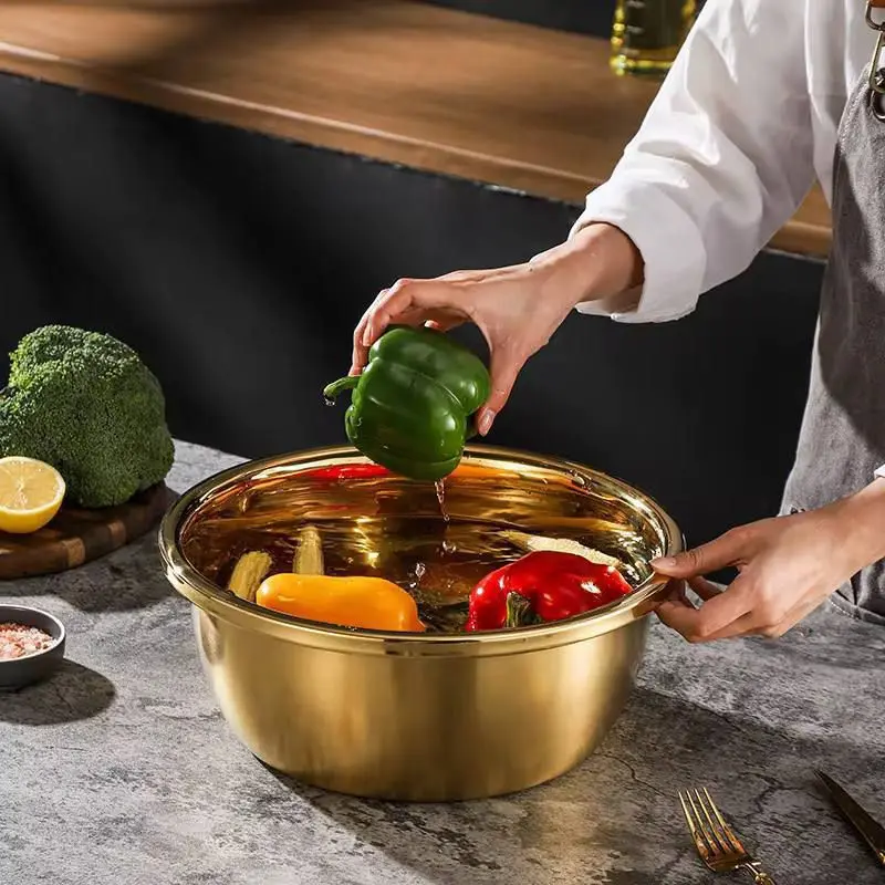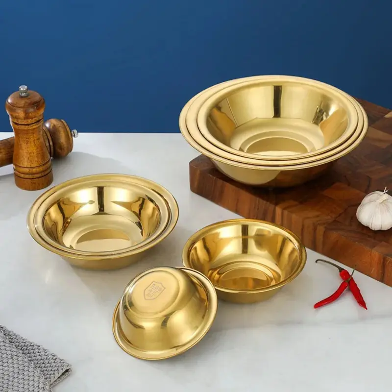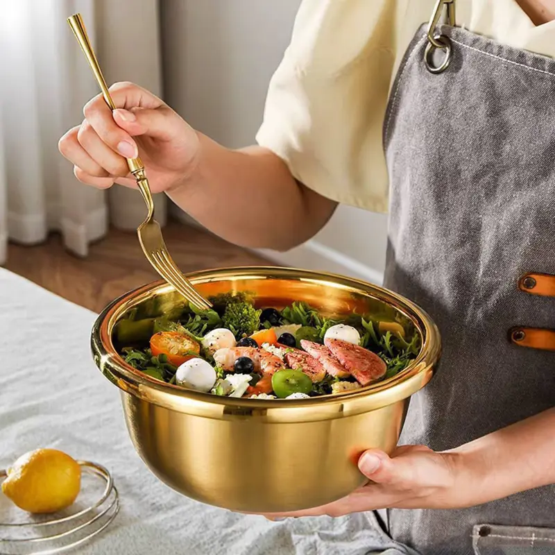 قطعة فنية وعملية لمطبخكِ! طقم الأوعية الذهبية هذا يجمع بين الخامة الممتازة المستوردة والتصميم الفاخر الذي يضيف لمسة أناقة لمطبخك.