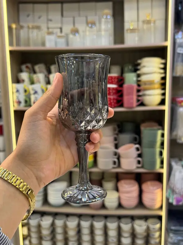 طقم كاسات زجاج فاخر - 6 قطع تميّزي في ضيافتك مع هذا الطقم الفاخر المكون من 6 كاسات زجاجية ستاند عالية الجودة. بتصميم أ…