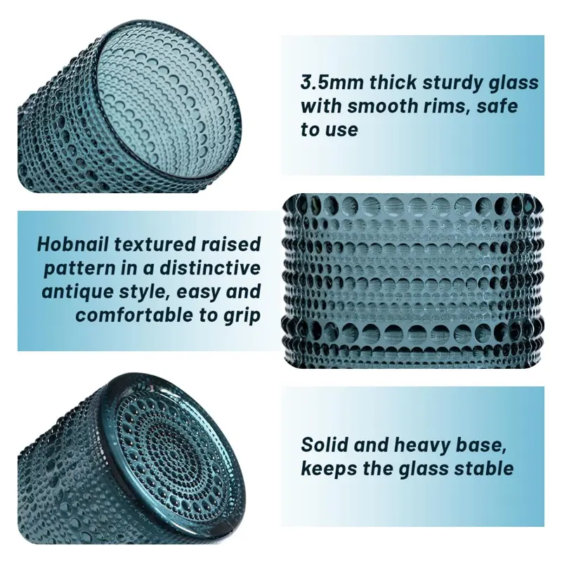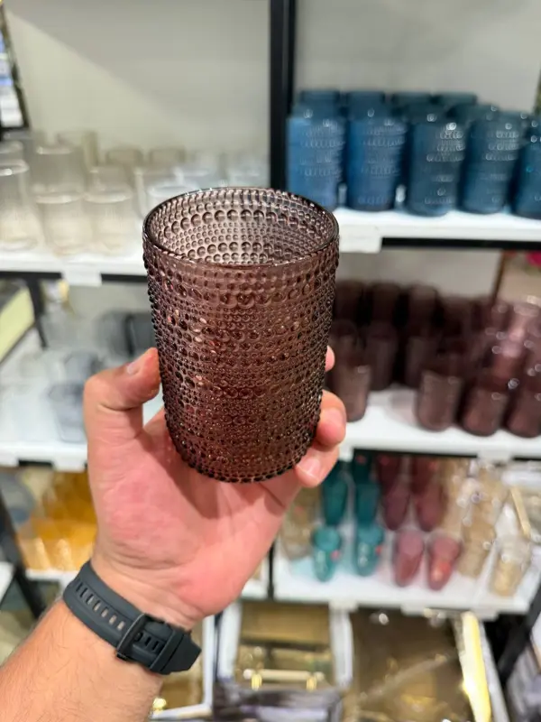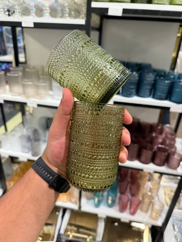 • تصميم محبب وملمس مميز: يتميز الزجاج بملمس خارجي محبب يضيف جمالاً وتماسكاً عند الحمل، ويمنحه مظهراً عصرياً وفاخراً يكمل أناقة مائدتكِ.