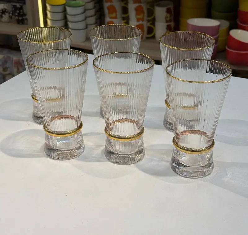 أضف لمسة من الفخامة والجمال إلى مائدتك مع طقم الأكواب الزجاجية المضلعة، المصمم خصيصاً ليناسب ذوقك الرفيع. هذا الطقم المستورد هو الخيار الأمثل لتقديم المشروبات بطريقة أنيقة ومميزة، فهو يجمع بين التصميم العصري وجودة الكريستال.