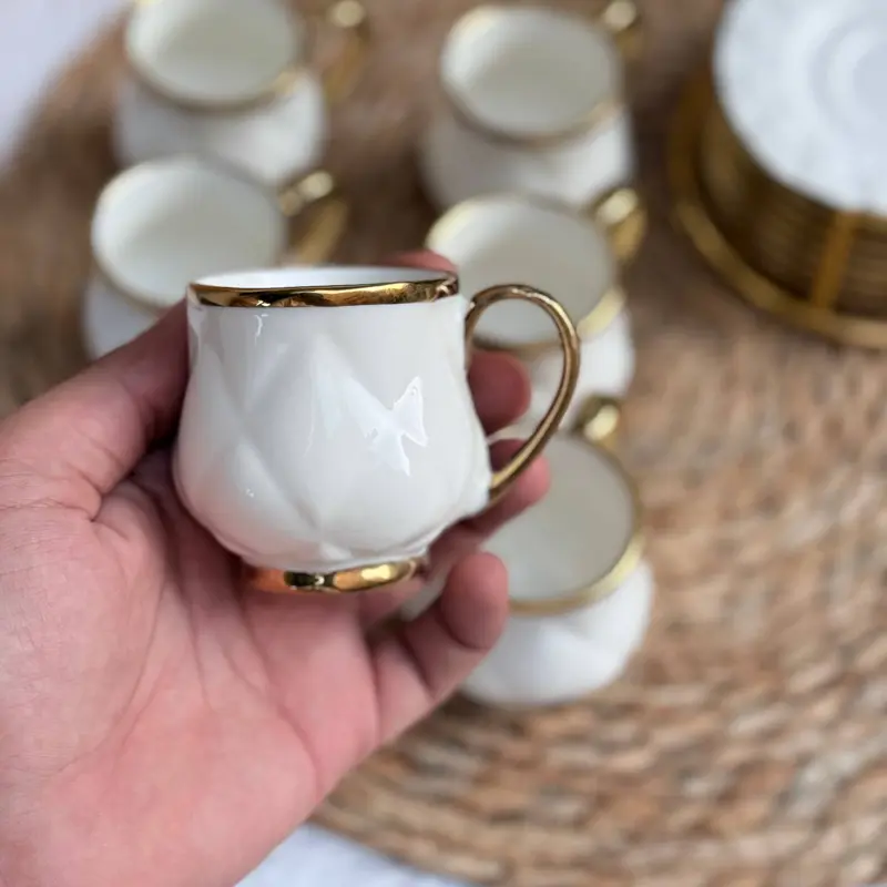أضف لمسة من الفخامة والرقي إلى ركن القهوة الخاص بك مع طقم القهوة الملكي "جولد إيليجانس". هذا الطقم ليس مجرد أدوات لشرب القهوة، بل هو تحفة فنية مصممة لتجعل كل لحظة استمتاع بالقهوة تجربة ملكية.