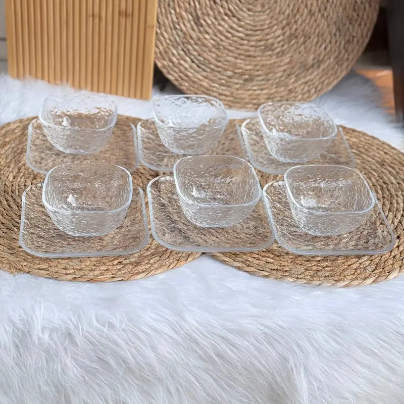 رائج طقم التقديم "ديكور جلاس" المضلع والشفاف 12 قطعة للخشاف والحلويات