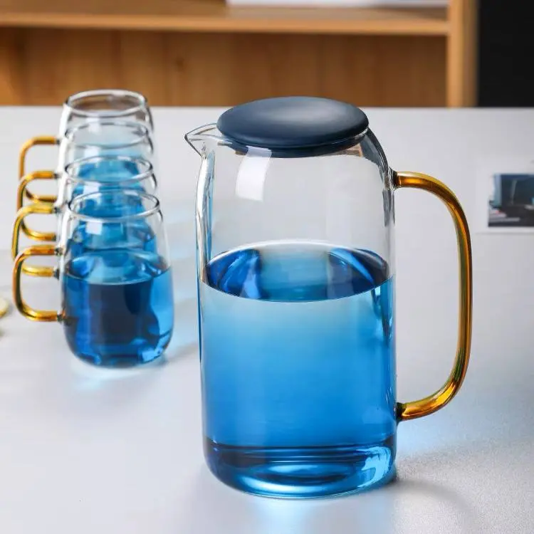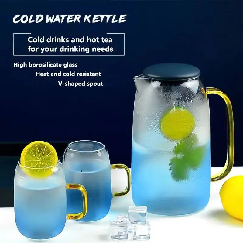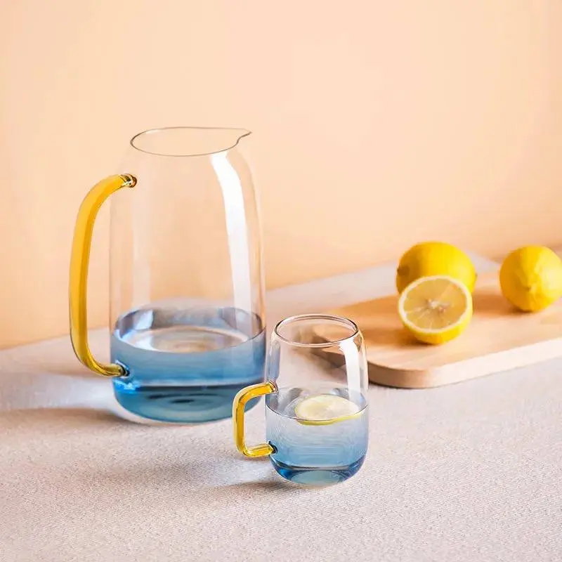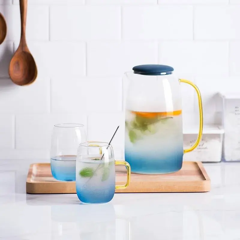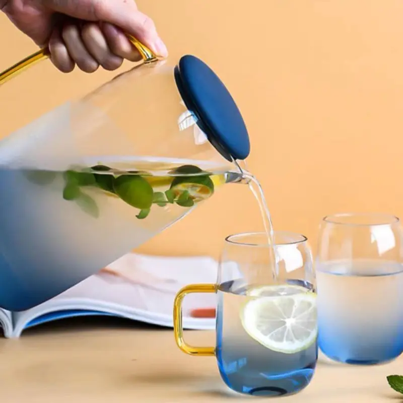 صُنع هذا الطقم من أجود أنواع الزجاج المقاوم للحرارة والبرودة، مما يتيح لك استخدامه مباشرة على النار لغلي المشروبات. يتميز بتصميمه الانسيابي ولونه الأزرق المتدرج الجذاب، ويشمل دورقًا أنيقًا وكوبين، مما يجعله مثاليًا للتقديم.