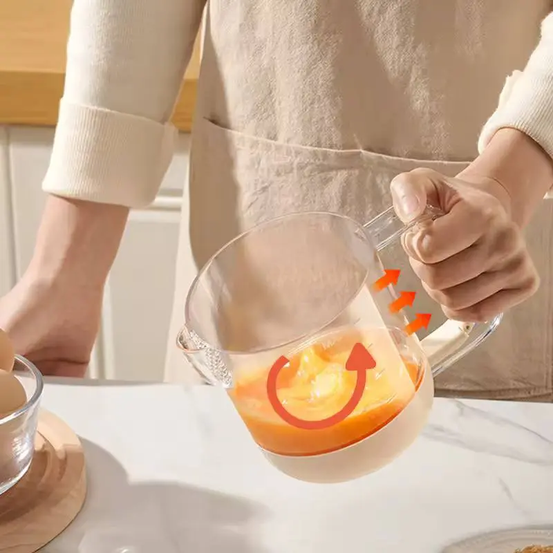 ودّعي المجهود مع الطقم العملي 3 في 1! هذا المضرب اليدوي المستورد يجمع بين الخلاط، المضرب، والدورق في أداة واحدة سهلة الاستخدام، مثالية لخلط البيض والكيك والمشروبات السريعة دون الحاجة للكهرباء.