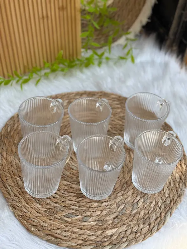 قطعة فريدة تروي قصة الأناقة والجمال. هذا الطقم المكون من 6 قطع هو إضافة استثنائية لمجموعتك، فهو مصنوع من زجاج نقي مستورد ويتميز بتصميمه الذي يجمع بين الفن والوظيفة. الشكل الموجي المميز يمنح كل مج طابعه الخاص، ويجعله تحفة فنية في يدك. بسعة 350 مل، يعد مثاليًا لتقديم الشاي أو القهوة، ويأتي في علبة أنيقة تليق بجودته العالية، مما يجعله هدية مثالية لمحبي الذوق الرفيع.
