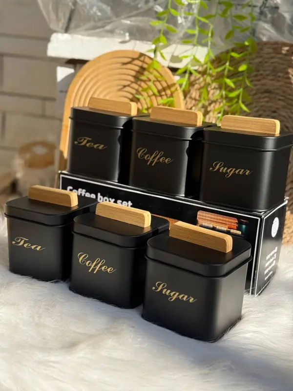 لمسة من الأناقة والتنظيم لركن القهوة. هذا الطقم المستورد المكون من 3 قطع هو إضافة مثالية لمطبخك، حيث يجمع بين التصميم ا…