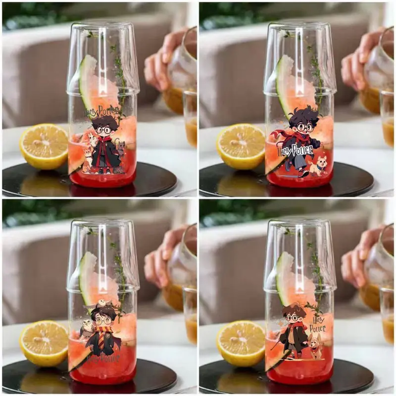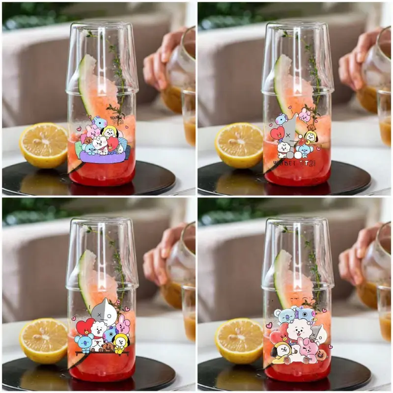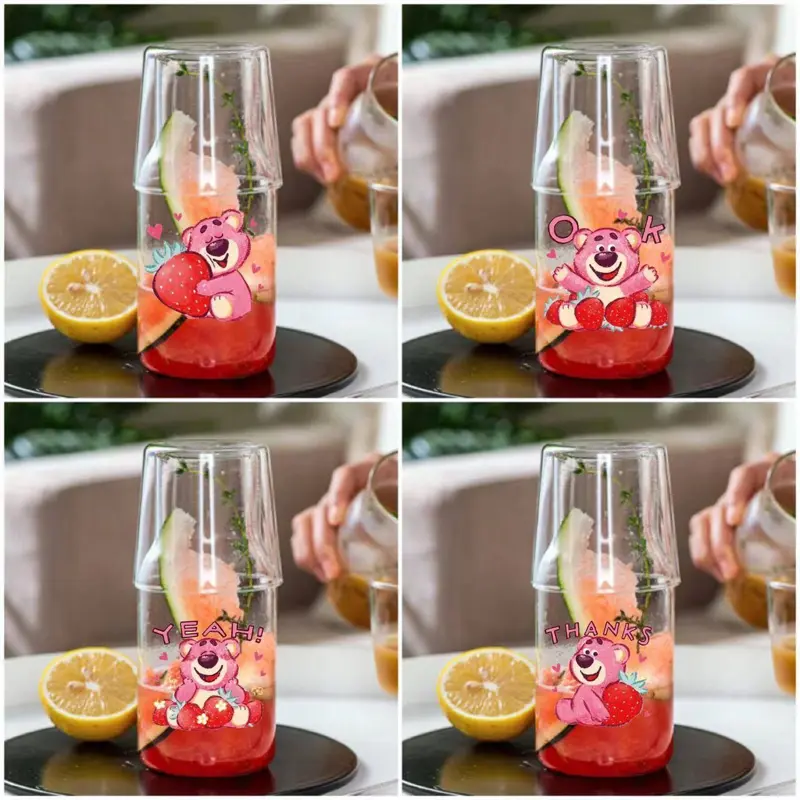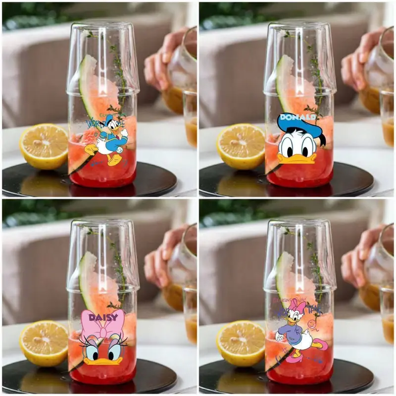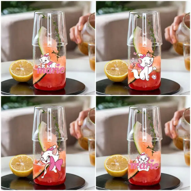 يتميز الطقم بتصميم مبتكر يجمع بين قارورة زجاجية وكوب زجاجي يوضع فوقها ليصبح غطاءً عمليًا، مما يحافظ على نظافة مشروبك. تتعدد استخداماته لتقديم الماء، العصائر، أو حتى كقطعة ديكور مميزة على طاولتك.