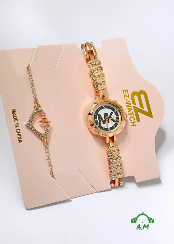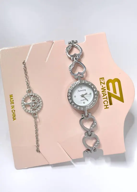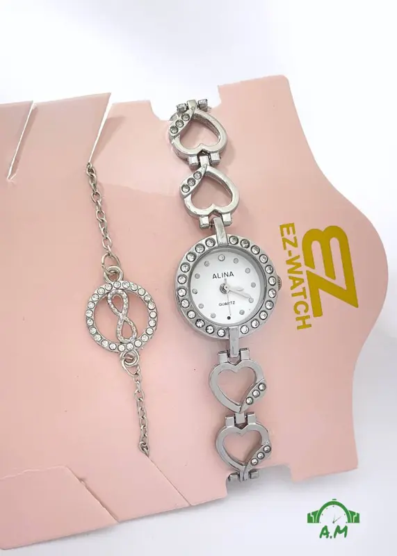 • طقم متناسق: يأتيكِ الطقم قطعة واحدة متكاملة، حيث يتناغم تصميم الساعة مع الانسيال بشكل مثالي.