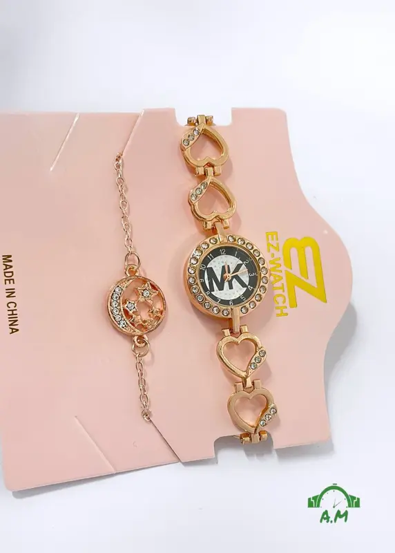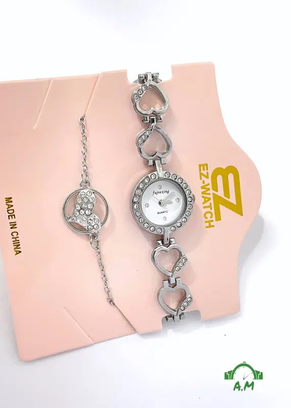 اكتشفي الأناقة الكاملة مع طقم الساعة والانسيال النسائي بأشكاله الجديدة والحصرية. هذا الطقم مصمم ليمنحك إطلالة متكاملة وساحرة، فهو يجمع بين الأناقة العصرية والجودة العالية.