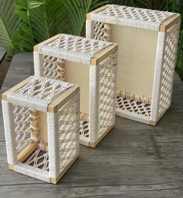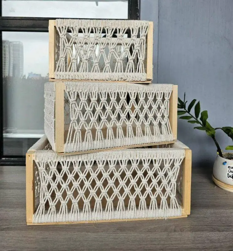 أضف لمسة من الدفء والجمال الطبيعي إلى منزلك مع طقم السلال المزخرف، المصمم بجمال يجمع بين فن النسيج اليدوي والخشب الطبيع…