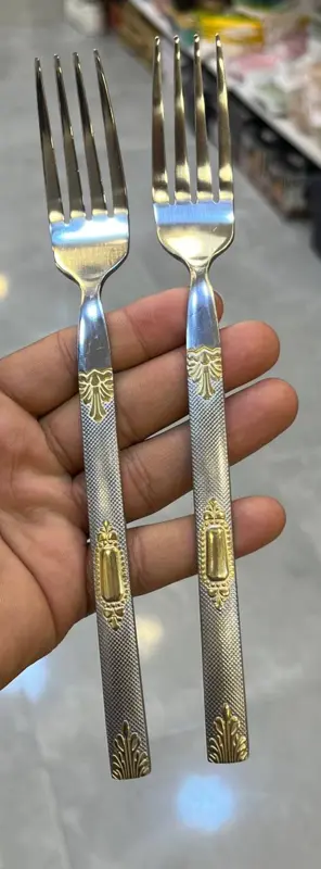 حوّلي مائدتك إلى تحفة فنية مع هذا الطقم الفاخر! طقم الشوك المستورد يجمع بين متانة الستانلس ستيل وأناقة التصميم ثنائي اللون (جولد X سيلفر)، ليمنحكِ قطعاً راقية تليق بأفخم الضيافات.